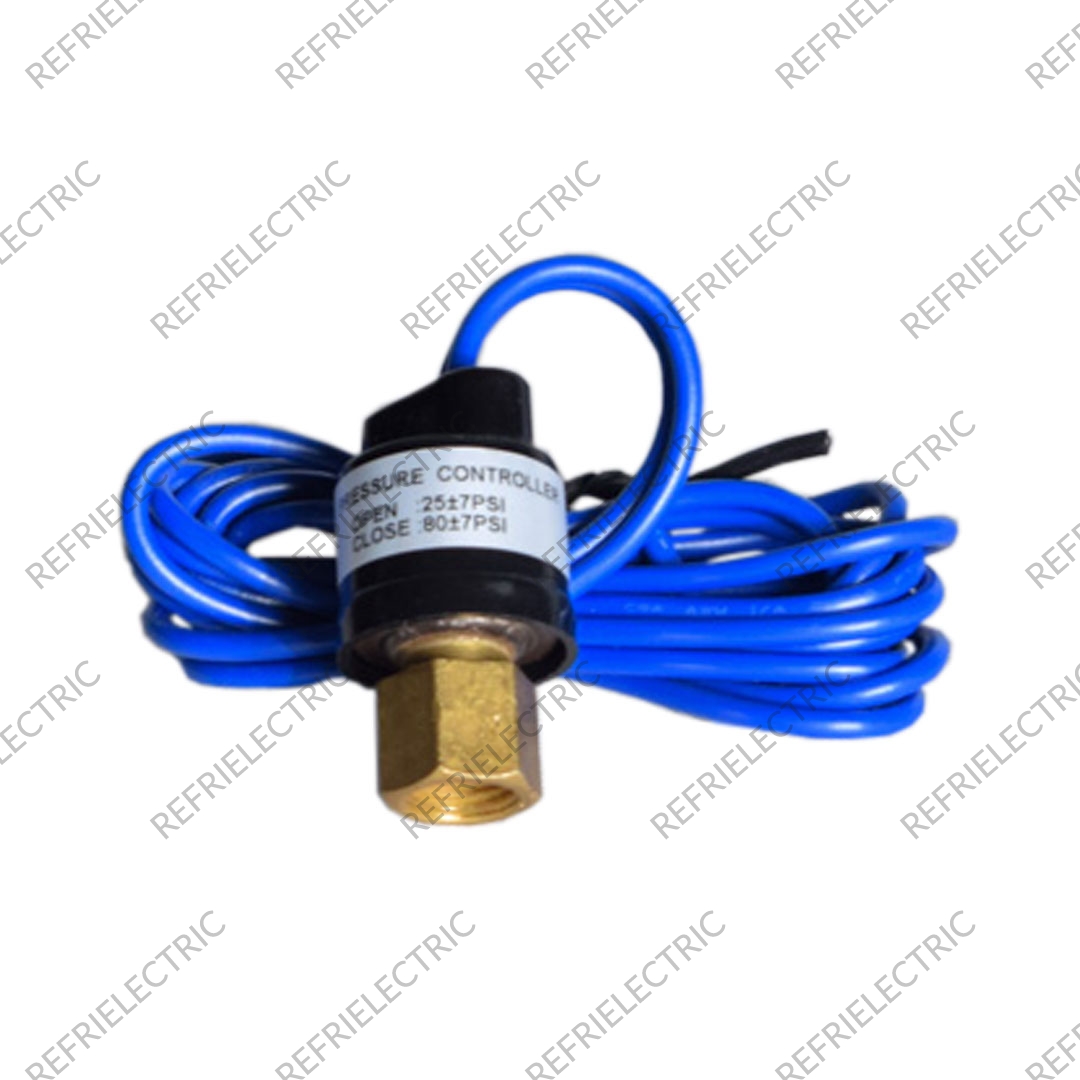 PRESOSTATO TIPO PILA O INTERRUPTOR DE PRESION . TIPO DE PRESION: BAJA . REFRIGERANTE: R22 . PRESION: 25 – 80 PSI . EL PRESOSTATO ES UN INSTRUMENTO QUE ABRE Y CIERRA UN CIRCUITO ELECTRICO, EN FUNCION DEL CAMBIO DE UN VALOR DE PRESION PREFIJADO.