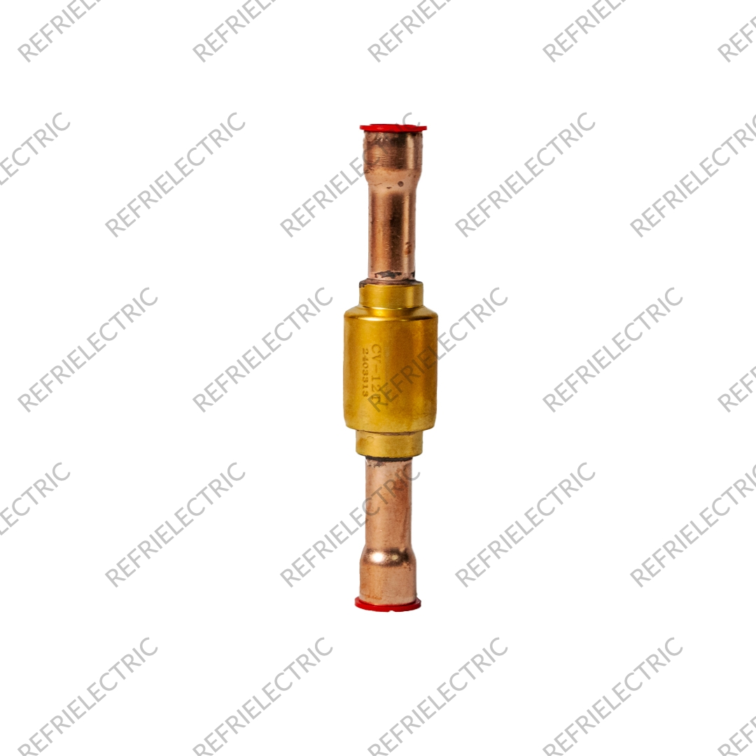 VALVULA DE RETENCION O CHEQUE . TIPO: CV . CONEXIÓN: 5/8″ X 5/8″ SOLDABLE . PASO: RECTO . MAXIMA PRESION DE TRABAJO: 46 BAR(667psig) . MAXIMA TEMPERATURA DE TRABAJO: -30° A 120°C . REFRIGERANTE: R22/R134A/R404A/R410A/R507C/R407C ETC.. LAS VALVULAS DE RETENCION ESTAN OPTIMIZADAS PARA SU USO EN TUBERIAS DE LIQUIDO, ASPIRACION Y GAS CALIENTE EN APLICACIONES DE AIRE ACONDICIONADO PARA GARANTIZAR UN SENTIDO DE FLUJO CORRECTO.