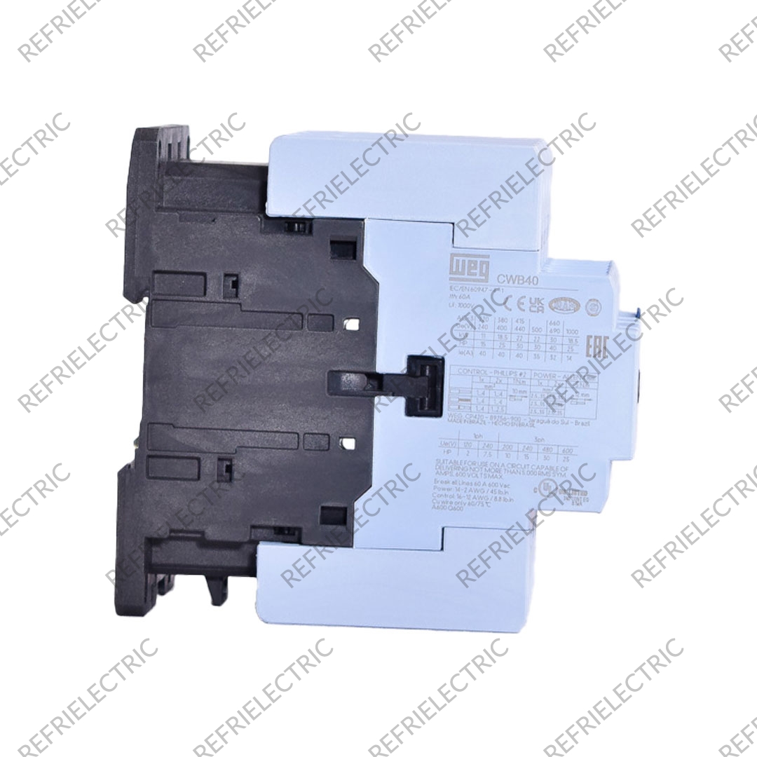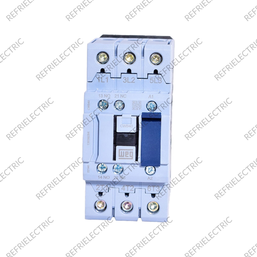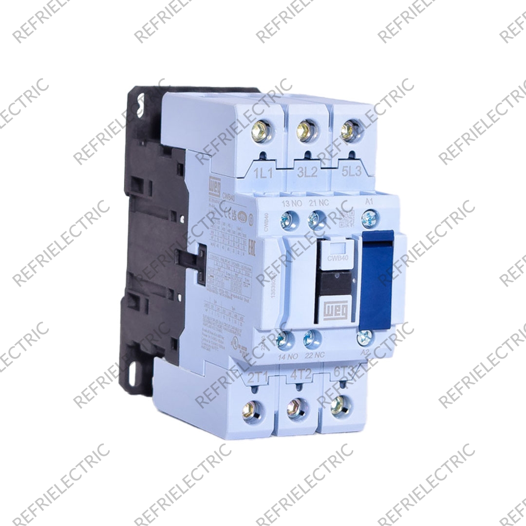 CONTACTOR TRIPOLAR SERIE CWB . CAPACIDAD DE CORRIENTE: 40AMP(AC3) 60AMP(AC1) . POTENCIA NOMINAL MAXIMA DE OPERACION DE MOTORES TRIFASICOS 230V 60Hz(HP): 15 . VOLTAJE BOBINA:220V . CARASTERISTICAS: SOLUCION COMPACTA: CON SOLAMENTE 45mm DE ANCHO Y DISPONIBLES HASTA 38AMP, LOS CONTACTORES CWB PERMITEN UN MEJOR APROVECHAMIENTO DEL ESPACIO INTERNO DE TABLEROS ELECTRICOS . CONTACTOS AUXILIARES 1NA + 1NC INCORPORADOS HACE DEL CWB UN CONTACTOR FLEXIBLE Y ADECUADO PARA APLICACION EN LA MAYORIA DOS SISTEMAS DE AUTOMATIZACION, CONTRUYENDO PARA LA REDUCCION DEL ESPACIO EN TABLEROS ELECTRICOS . FLEXIBILIDAD EN EL MONTAJE: LOS CONTACTORES CWB PUEDEN SER FACILMENTE MONTADOS EN LOS TABLEROS UTILIZANDO RIELES DIN O POR TORNILLOS ATRAVES DE SUS ORIFICIOS OBLONGOS . FUNCION: EFECTUAR MANIOBRAS DE APERTURA Y CIERRE DE CIRCUITOS ELECTRICOS RELACIONADOS CON INSTALACIONES DE AIRE ACONDICIONADO,COMPRESORES, SITEMA DE BOMBEO, MAQUINAS Y PROCESOS EN GENERAL.