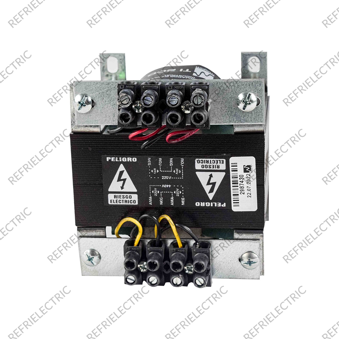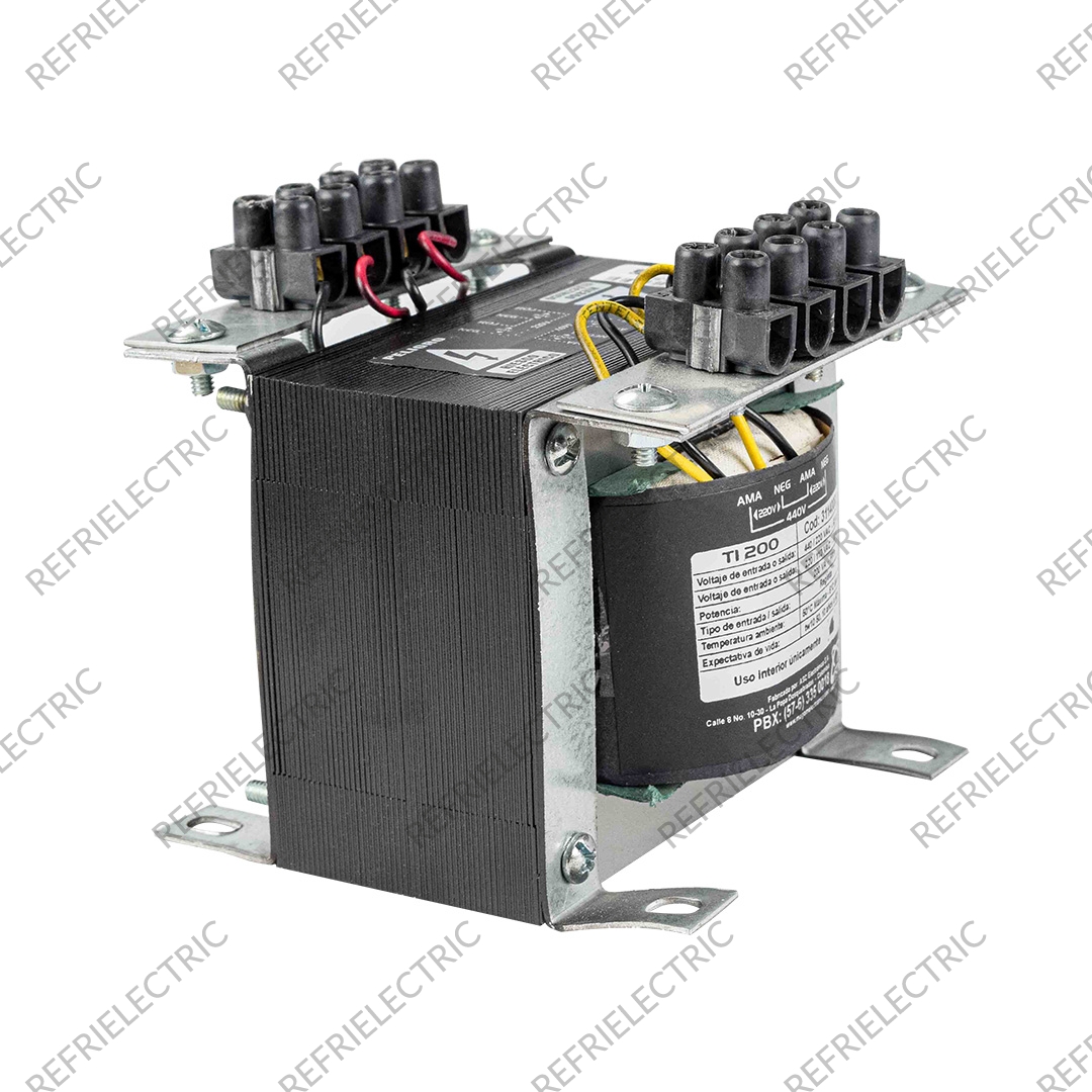TRANSFORMADOR INDUSTRIAL DE CONTROL . TIPO: TI . POTENCIA: 400 VA . TIPO DE CONEXIONES: REGLETA . TEMPERATURA MAXIMA DE TRABAJO: -5°C A 50°C . CARASTERISTICAS: EL DISEÑO DEL TRANSFORMADOR PERMITE UNA FACIL CONEXIÓN PARA DIFERENTES VOLTAJE DE ENTRADA Y SALIDA:(110/440-440/110V)-(110/220-220/110V)-(220/440-440/220V).. APLICACIONES: TABLEROS DE CONTROL – INSTALACION DE MAQUINAS A 440V – APLICACIONES QUE REQUIEREN CONVERSION DE 110V, 220V Y 440V.