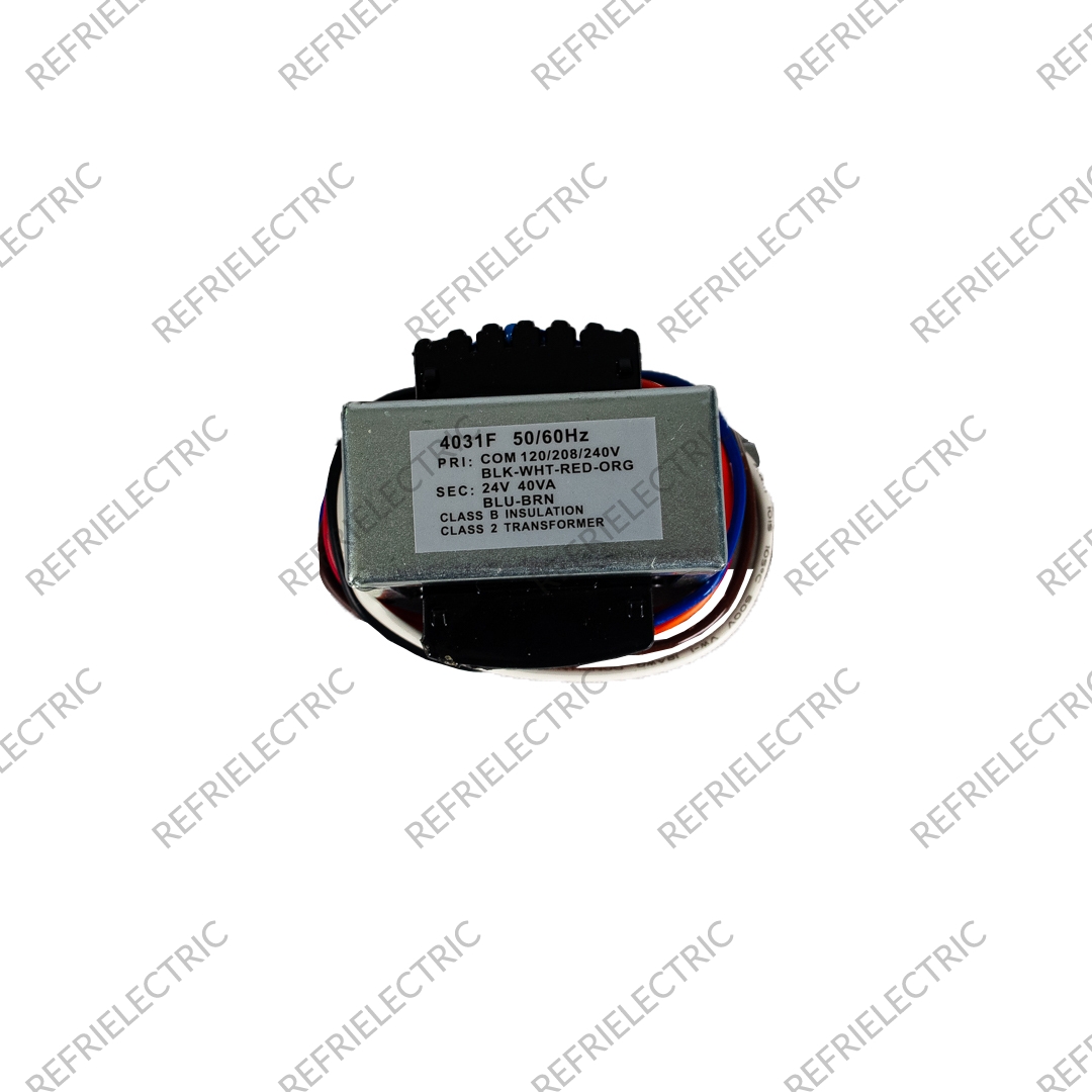 TRANSFORMADOR DE POTENCIA . PODER: 40VA . VOLTAJE DE ENTRADA(PRIMARIO): 120/208/240V . VOLTAJE DE SALIDA(SECUNDARIO): 24V . TEMPERATURA DE TRABAJO: -2°C A 60°C . ESTAN INCORPORADOS AL SISTEMA DE ARRANQUE DE LOS AIRES ACONDICIONADOS CENTRALES . CONTROLAN LA BOBINA DEL CONTACTOR – INTERRUPTOR DE FASE . CONSTRUCCION: NUCLEOS DE LAMINA DE ACERO AL SILICIO, BOBINA CON ARROLLADOS DE COBRE . SISTEMA DE FIJACION: ANGULOS PLASTICOS HOTIZONTALES, ANGULOS METALICOS VERTICALES, BRIDA . CONEXION: CABLE, ETIQUETA DE IDENTIFICACION.