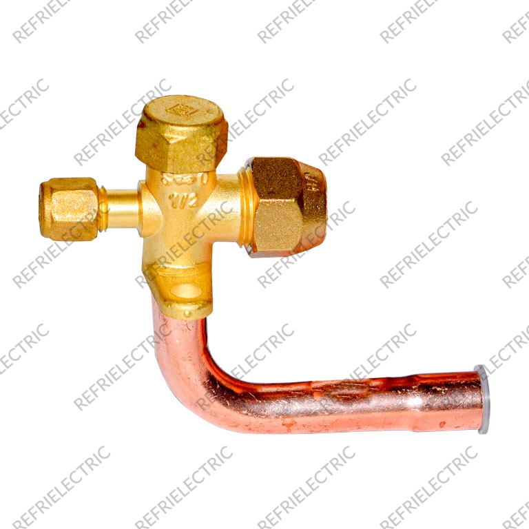 VALVULA DE SERVICIO O DE CORTE DE MINISPLIT . CONEXIÓN 1/2″ SOLDAR . PASO: CURVA .APLICACIONES: EN UN SISTEMA DE REFRIGERACION (MINISPLIT), EL FLUJO DE REFRIGERANTE SE CONTROLA PARA FACILITAR LA REPARACION Y EL MANTENIMIENTO.