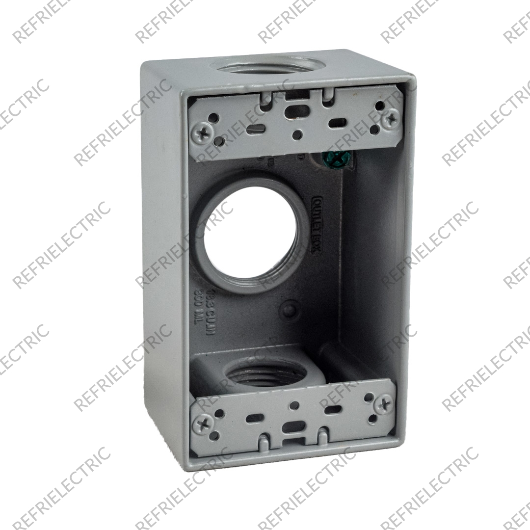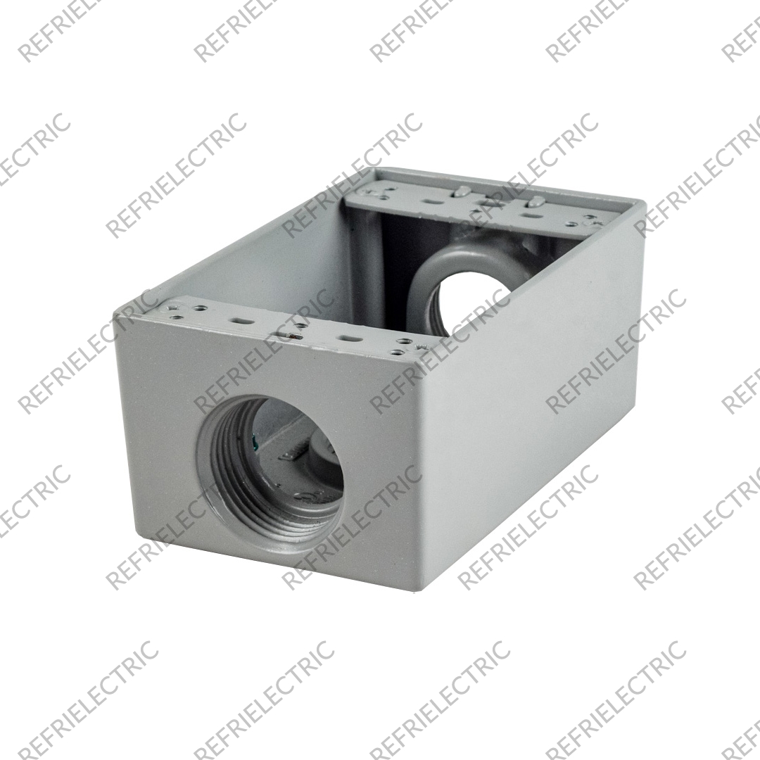CAJA APRUBA DE INTEMPERIE METALICA 2″X 4″ . MEDIDA NOMINAL: 1″ . N° DE SALIDAS: 3 . FABRICADA EN ALUMINIO INYECTADO A PRESION(diecast), CON PINTURA ELECTROESTATICA EPOXICA/POLIESTER POLIMERIZADA .RESISTENCIA A IMPACTOS MECANICOS EN CUERPO DE ACUERDO A IK09 . TORNILLO DE TIERRA.PAVISADO INCLUIDO . TAPONES DE CIERRE . AGUREJOS ROSCADOS 1″NPT PARA USARSE CON TUBO CONDUIT RIGIDO E IMC . RESISTENTE A AMBIENTES HUMEDOS Y ALTAMENTES CORROSIVOS. . PUEDEN SER INSTALADOS PARA RECIBIR ACCESORIOS COMO: TOMAS, INTERRUPTORES, CONTACTOS, ESTACIONES DE BOTONES, LUCES PILOTO.